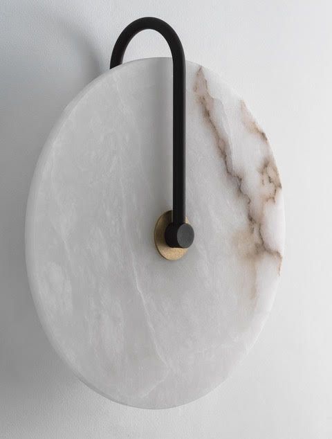 Som nordmann er jeg naturligvis glad i naturlige materialer. Marmor er en av favorittene og et materiale jeg liker å bruke i alle mulige formater. Til min drømmebolig, og på en noe tilfeldig vegg hvor man kanskje ikke ville tenkt å plassere noe annet, ønsker jeg denne vegglampen fra Allied Maker. Lampen er laget av marmor og når skrudd på skinner lyset så vidt igjennom marmoren så man vil kunne se de mørke årene som skjærer gjennom. Et mer