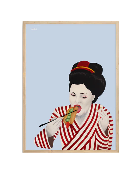 Og lampen fra Murano hadde gjort seg så godt i trapperommet vårt, sammen med bilde av Taisho - Hungry Geisha.